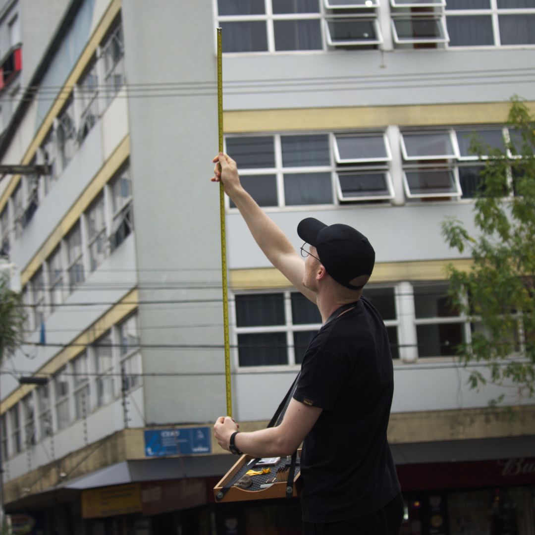 A série de registros das ferramentas em uso no ambiente urbano instiga a imaginação sobre a aplicação desses objetos em processos de medição e percepção dos espaços.